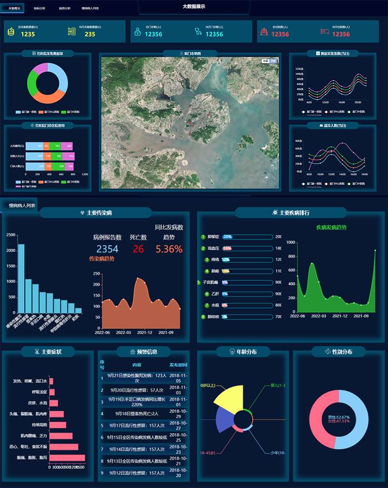 医院数据统计后台数据图形表格html网页模板