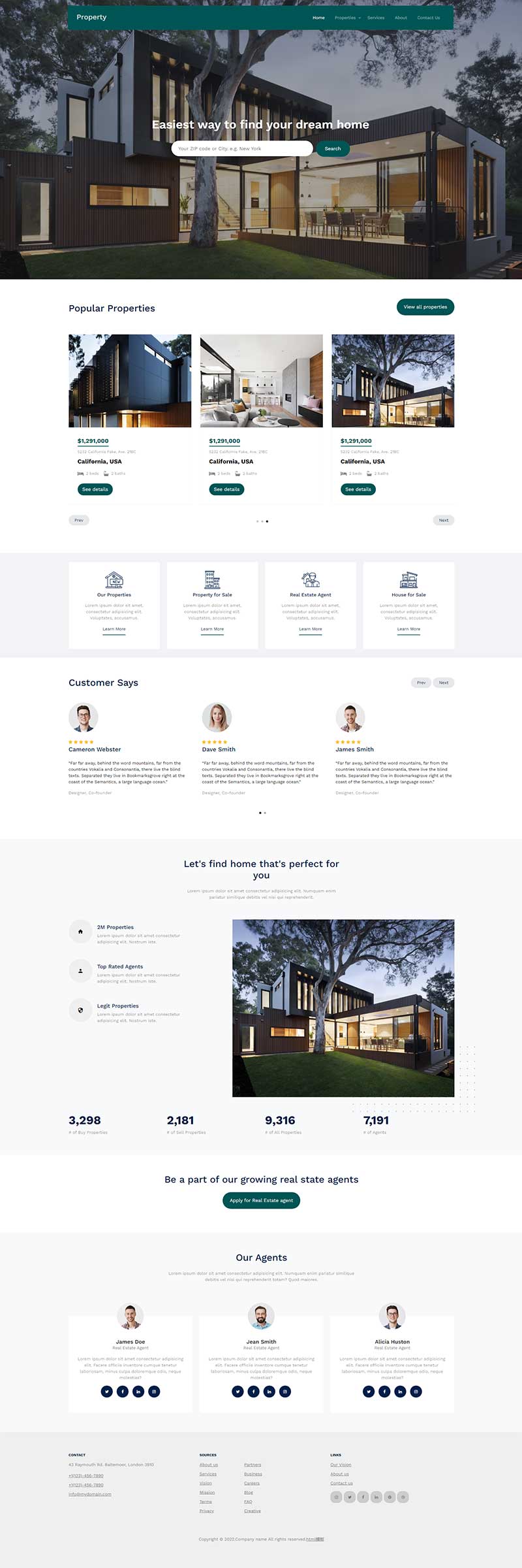 房屋别墅交易地产商html网站模板,可以自己替换修改内容。